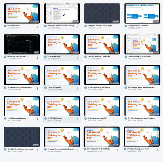 Our video mode training is highly effective as it provides a fully interactive virtual environment where all the trainees receive complete course materials in PDF format, along with reference documents and course code for hands-on practice. These pre-recorded videos have answers of most of the questions you can think of and it does help you step by step process to learn cutting edge AI topics on SAP BTP.